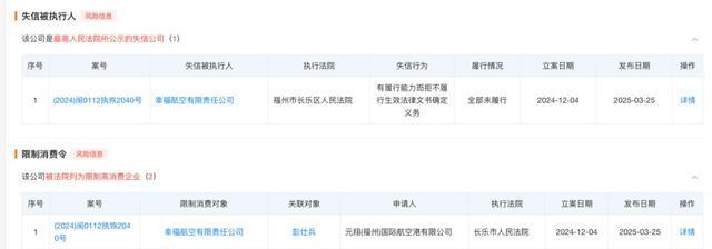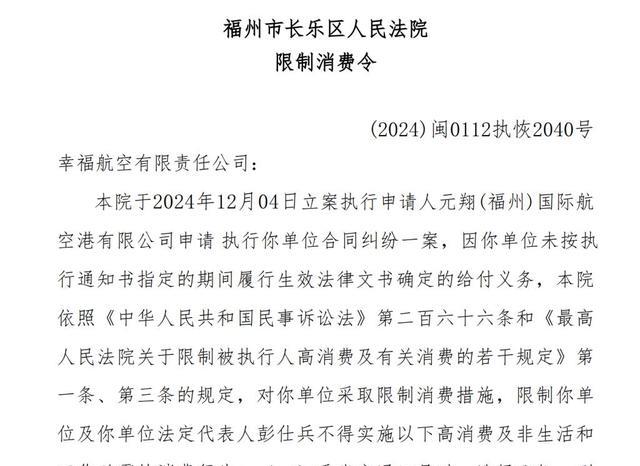 由于近年来的债务缠身,幸福航空更是被实施了限制消费令。