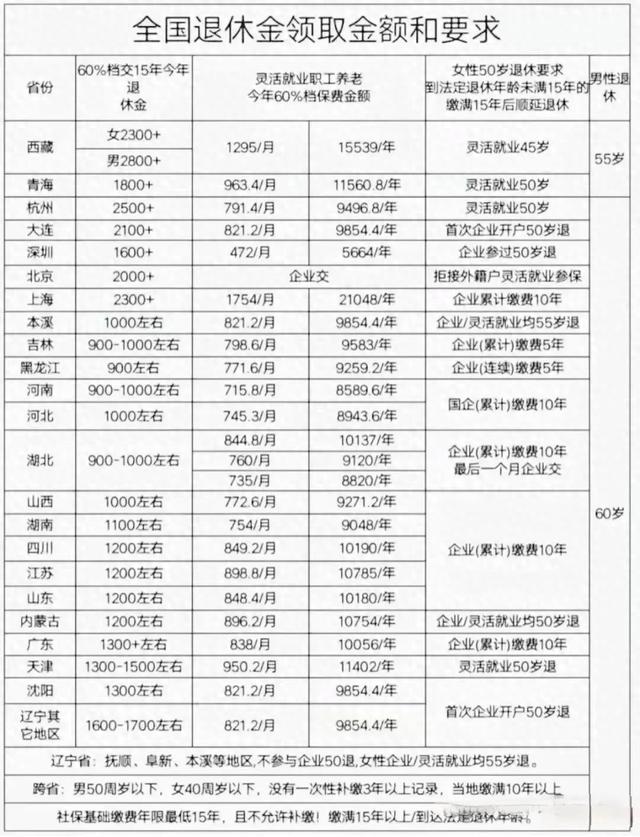 全国各地的退休金标准可不一样,西藏的退休金竟然是榜首,女的2300元/月,男的2800元/月。
