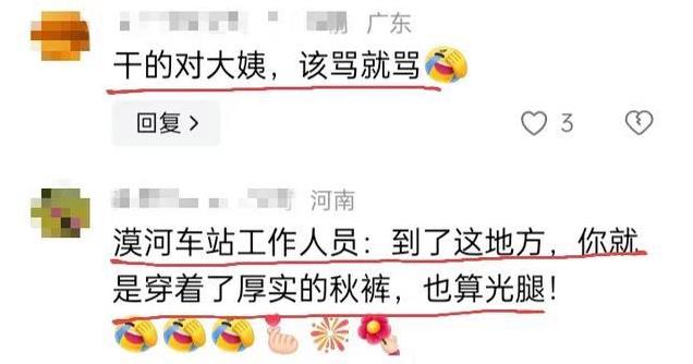 话说这南方游客到漠河被“劝阻”穿秋裤这事儿,最近可是在网上闹得沸沸扬扬。 想想也是,大老远跑去玩儿,结果一下火车就被车站工作人员拦下来,说你穿太少了,得加条秋裤,搁谁谁不懵圈啊? 这事儿啊,乍一听,好像工作人员有点“多管闲事”了,人家穿啥是人家的事儿嘛。但仔细琢磨琢磨,好像又没那么简单。 好多网友也跟着这事儿吵起来了,有人说工作人员太暖心了,简直是“行走的贴心小棉袄”,毕竟漠河那地儿,可不是闹着玩儿的冷,零下几十度跟玩儿似的。