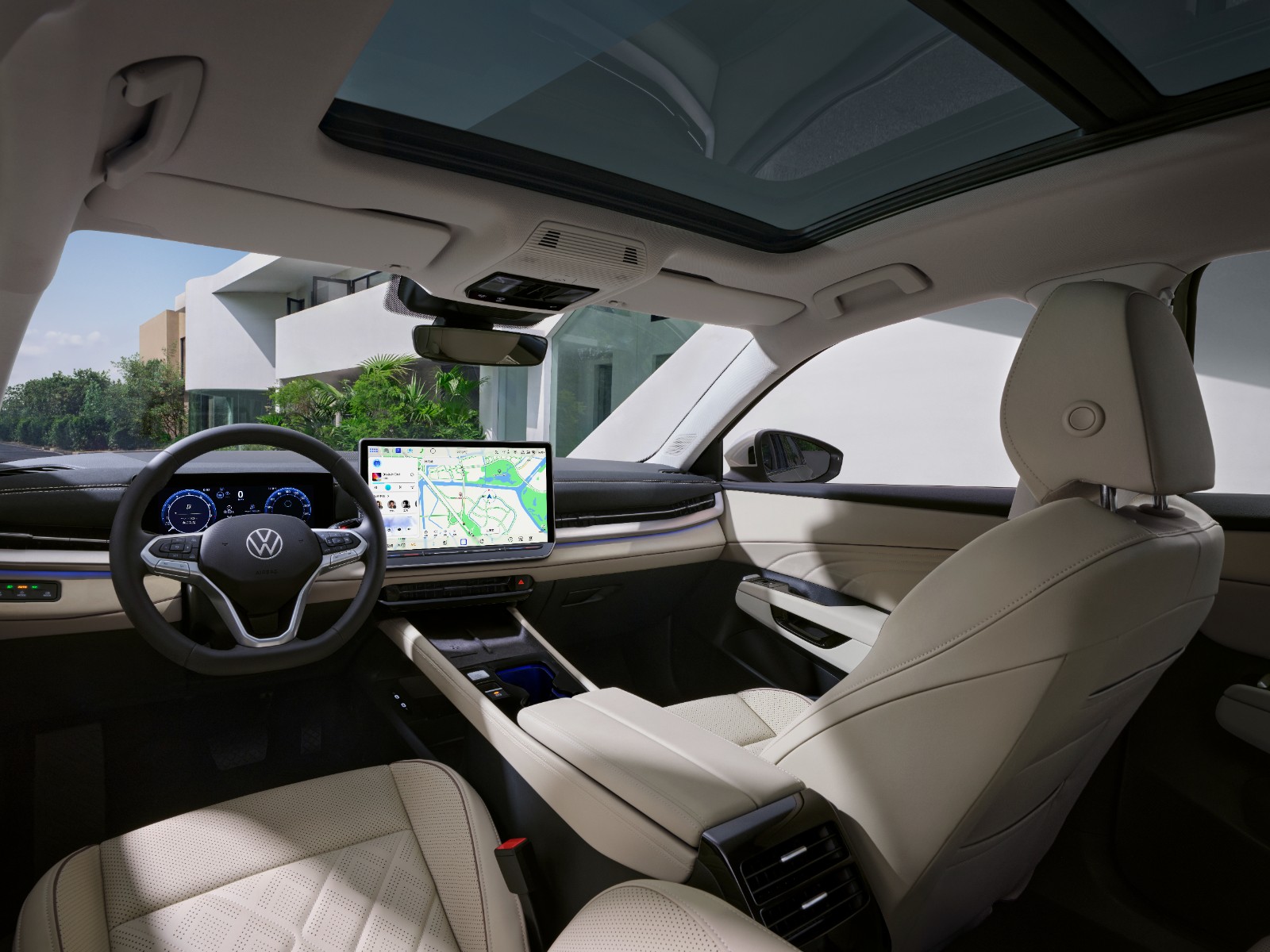 进入车内,15英寸触控智能2K悬浮屏成为视觉焦点。这块分辨率高达2240×1260的中控屏,表面镀有AR抗反射与AFR防指纹涂层,并融合低蓝光显示技术,确保清晰护眼且操作流畅。车机系统搭载高通8155处理器,采用Linux+Android双系统架构,支持AI语音助手、智能导航、车联网服务等核心功能。用户可通过语音指令在20秒内完成连续对话,无需重复唤醒,系统对普通话、四川话、粤语的识别准确率超过95%,响应快速精准。更值得一提的是,一汽-大众自研AI大模型融合云端Deepseek与字节跳动技术,构建涵盖AI百科、车知识问答、深度生活服务的知识图谱,让每一次交互都充满智慧。