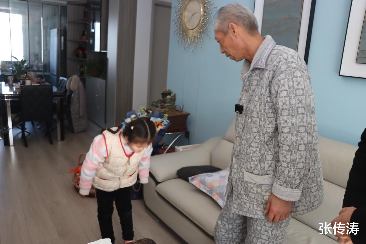 被救这名小女孩名叫李嘉欣,现年9岁,在妈妈带领下来到张小平家中,鞠躬致谢,并给张小平深深一吻。