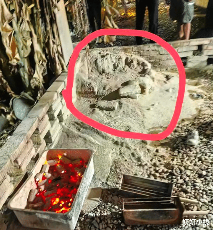 当她手伸进去的那一刻,发现手被烧脱皮了,才知道这并不是什么“沙坑”,而是炭火坑。