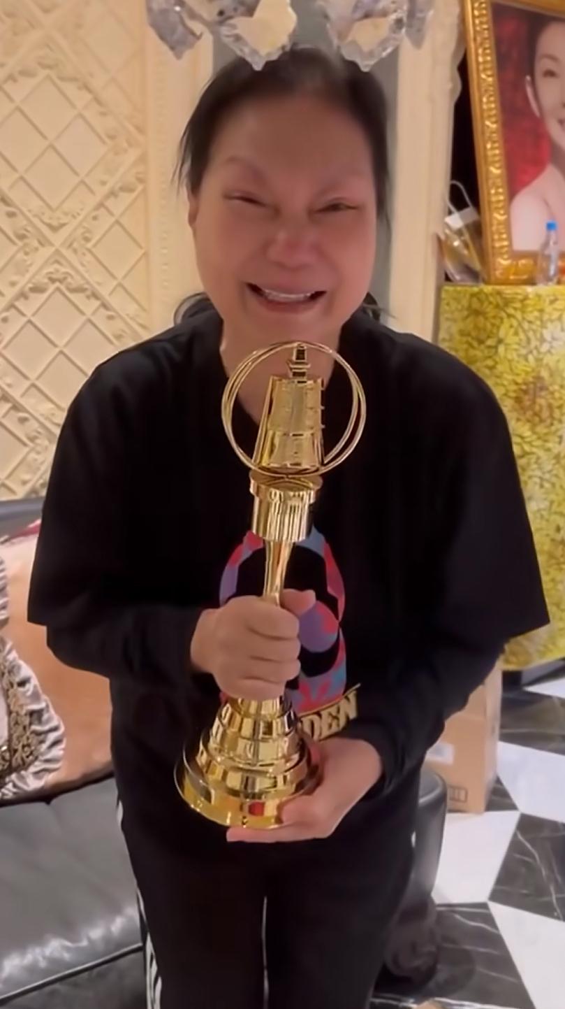 小S把金钟奖奖杯送给S妈,S妈拿到奖杯时双眼含泪,她为拥有一位这么优秀的女儿无比骄傲。