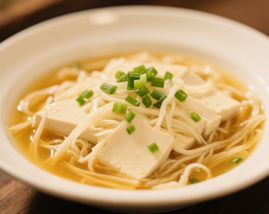 四、入汤:鲜味的“交响曲”文思豆腐的汤底,讲究“清而不寡”。鸡汤要吊足8小时,火腿要选三年陈的,香菇得用冬菇吊鲜。把这些食材往汤里一扔,文火慢煨,鲜味在锅里“勾肩搭背”,最后才轮到豆腐丝“闪亮登场”。