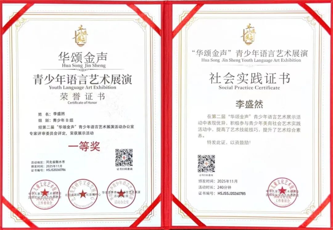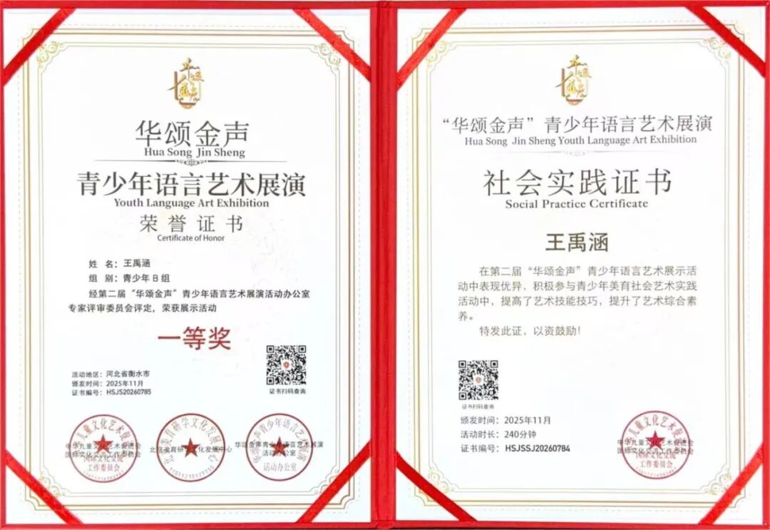 “华颂金声”由国际文化交流工作委员会主办,是语言艺术领域的国家级权威赛事,本届评委阵容涵盖金话筒奖得主董浩、中央广播电视总台著名主持人张悦、朗诵艺术家詹泽等业界名家,其含金量不言而喻。