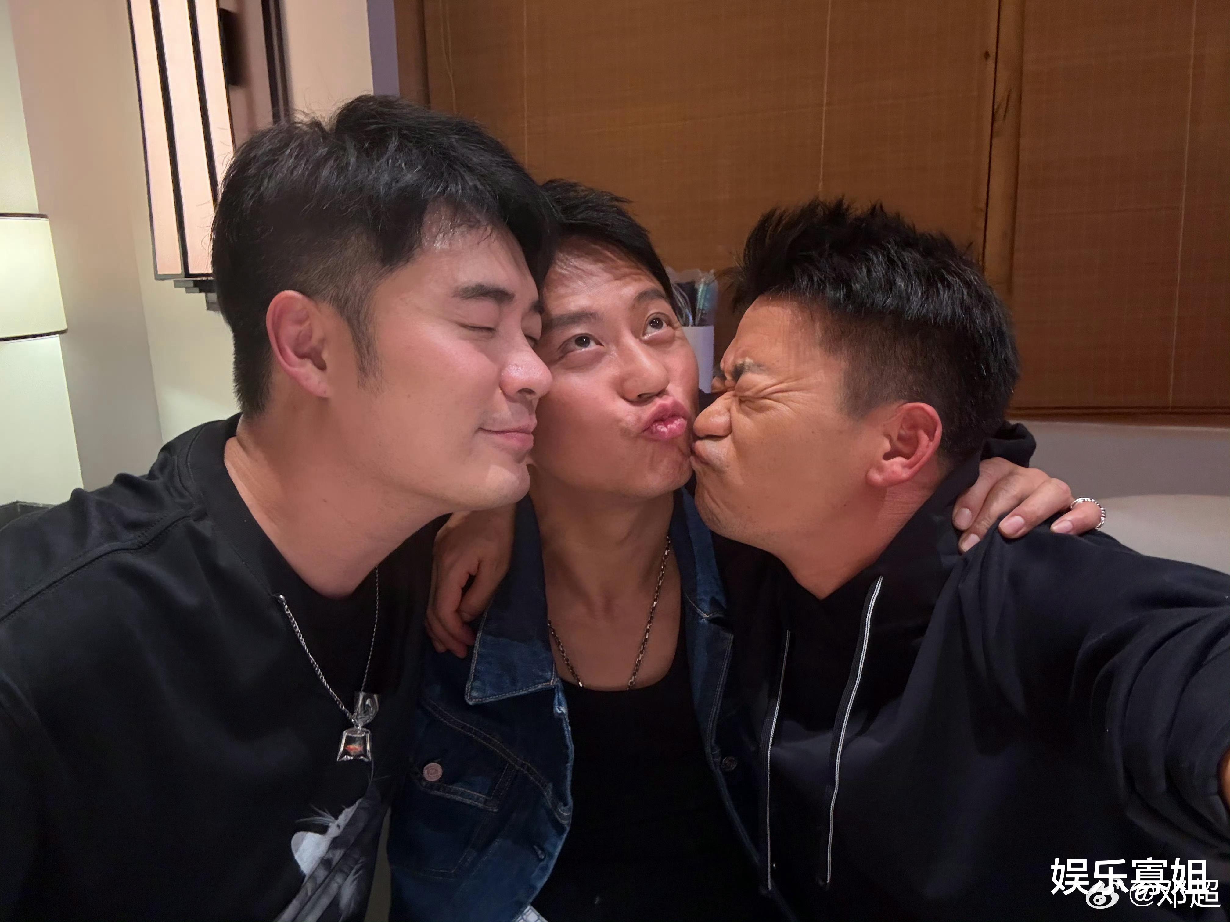 嗨!这里是娱乐寡姐,为你带来最新娱乐资讯。邓超今日凌晨在微博上晒自己与陈赫、王宝强亲亲合照,并配文:“爱的爱的[泪]”,不久,陈赫转发强调“爱的”。哈哈哈哈你们仨有点暧昧了!邓超在中间左右“强吻”,那搞怪的表情太逗了。