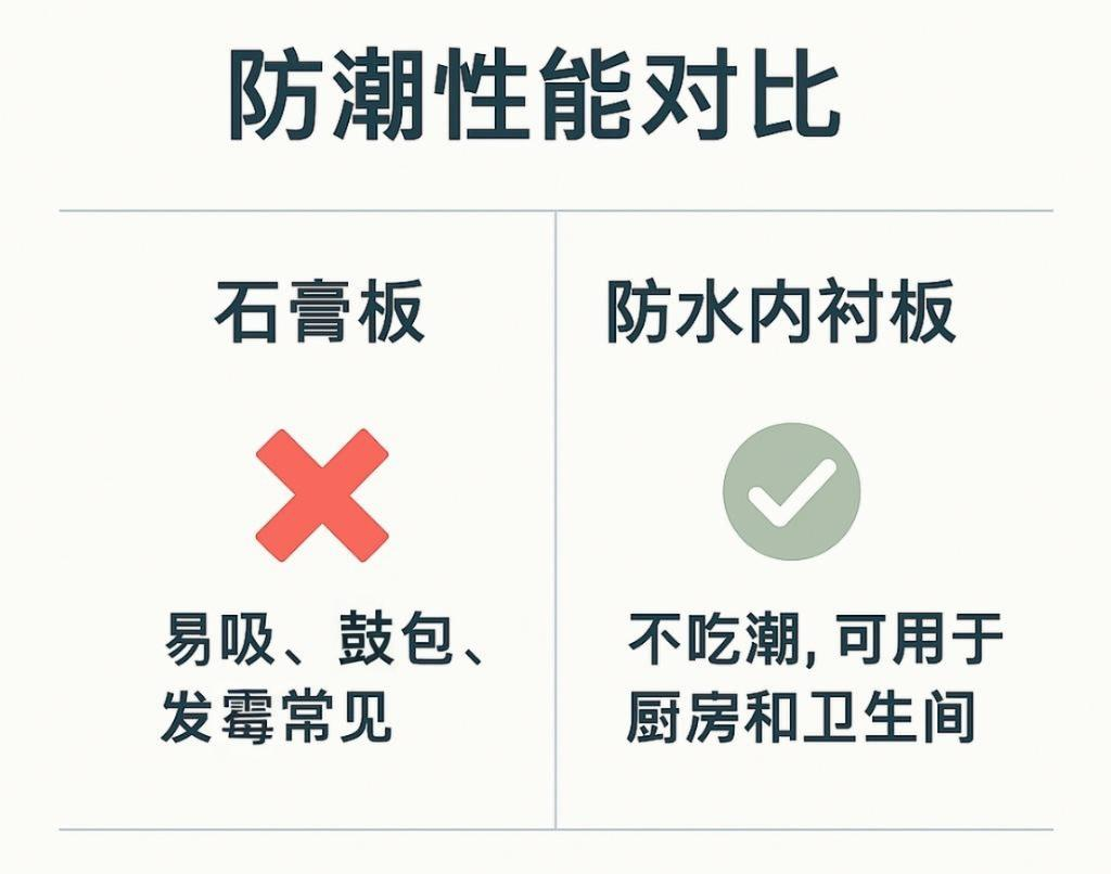 防水内衬板是不是比石膏板更好?我觉得不能一概而论。它确实有不少优点,尤其在潮湿、需要稳定性的区域,比如厨房、卫生间、阳台等地方,会更安心、更省后期麻烦。
