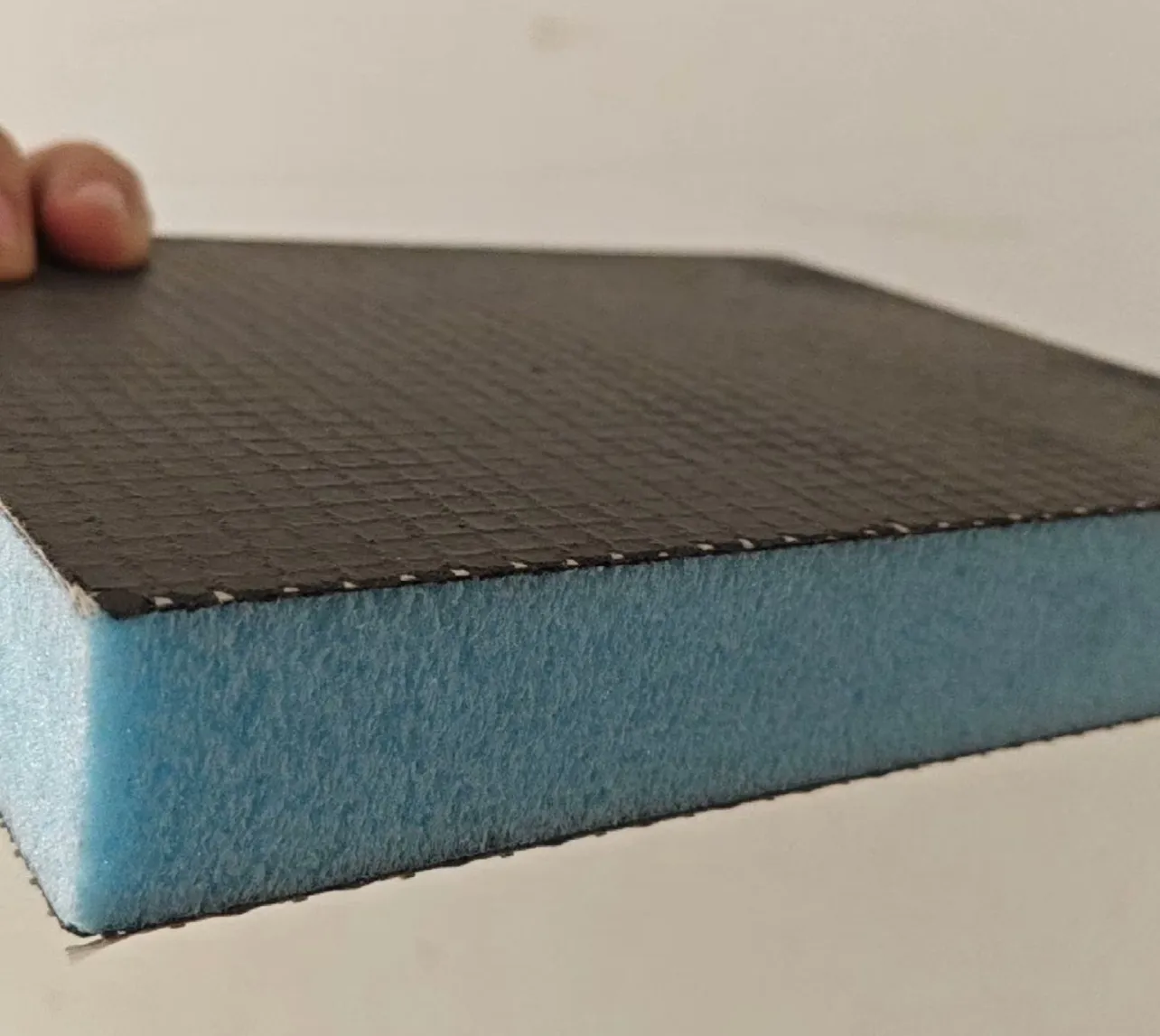 简单理解,它的结构是:中间是一层聚苯乙烯芯材,外层裹着聚合物砂浆和高强度玻纤网格。看起来像块轻质板材,但硬度、防水性都要比石膏板高很多。