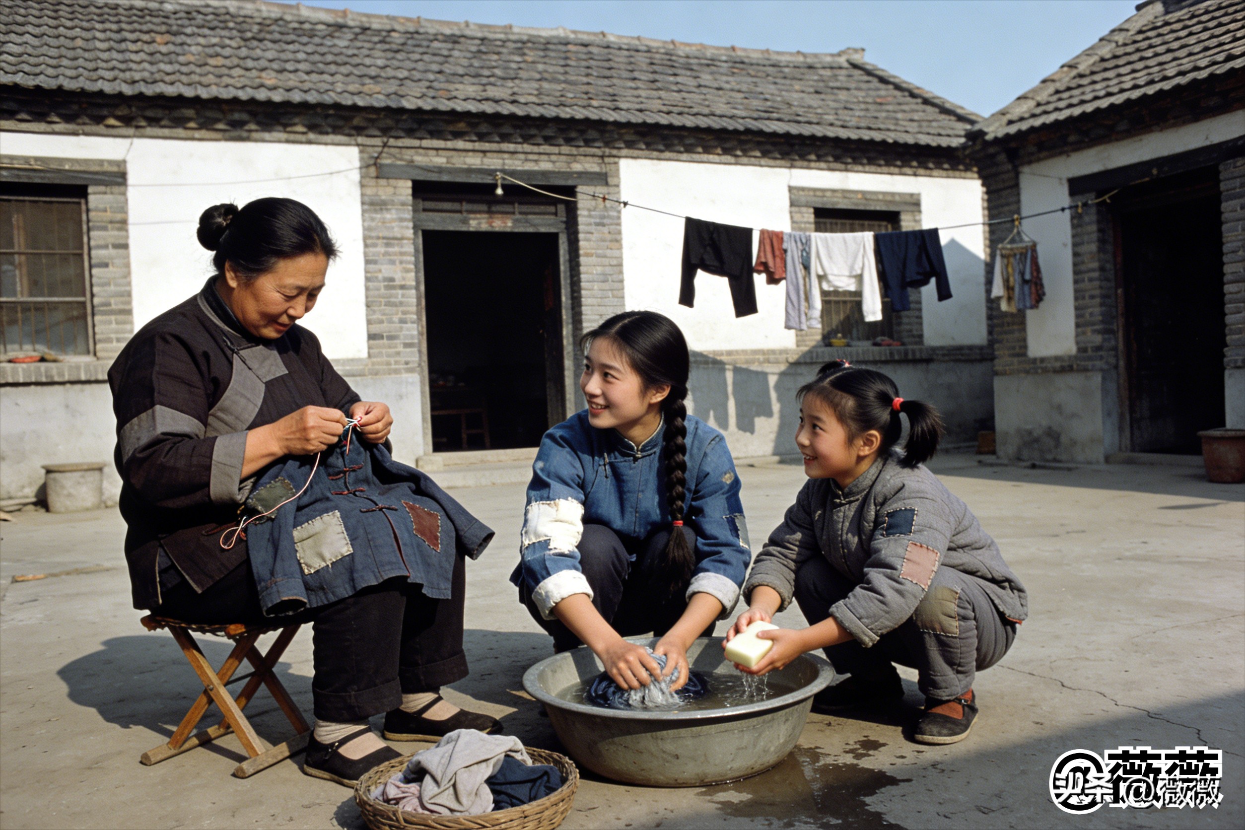 刘招娣挽起袖子,开始洗衣服。木盆里的衣服有大人的,也有孩子的,大多是粗布,打着补丁,但洗得勤,不算太脏。她从井里打来水,倒进盆里,用力揉搓。