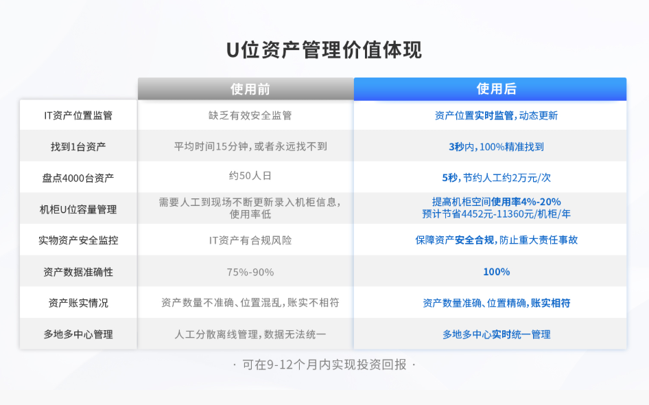 做机房管理、资产审计的同行都懂,每到审计季就像闯难关——账实对不上、设备找不到、追溯没依据,几个人熬几个通宵整理台账都是常事。其实核心问题就一个:机房U位资产没管好,全程追溯断了档。今天就结合政务、金融、科研院所的实际案例,聊聊机房U位资产追溯怎么落地,审计效率又能怎么实实在在提升。