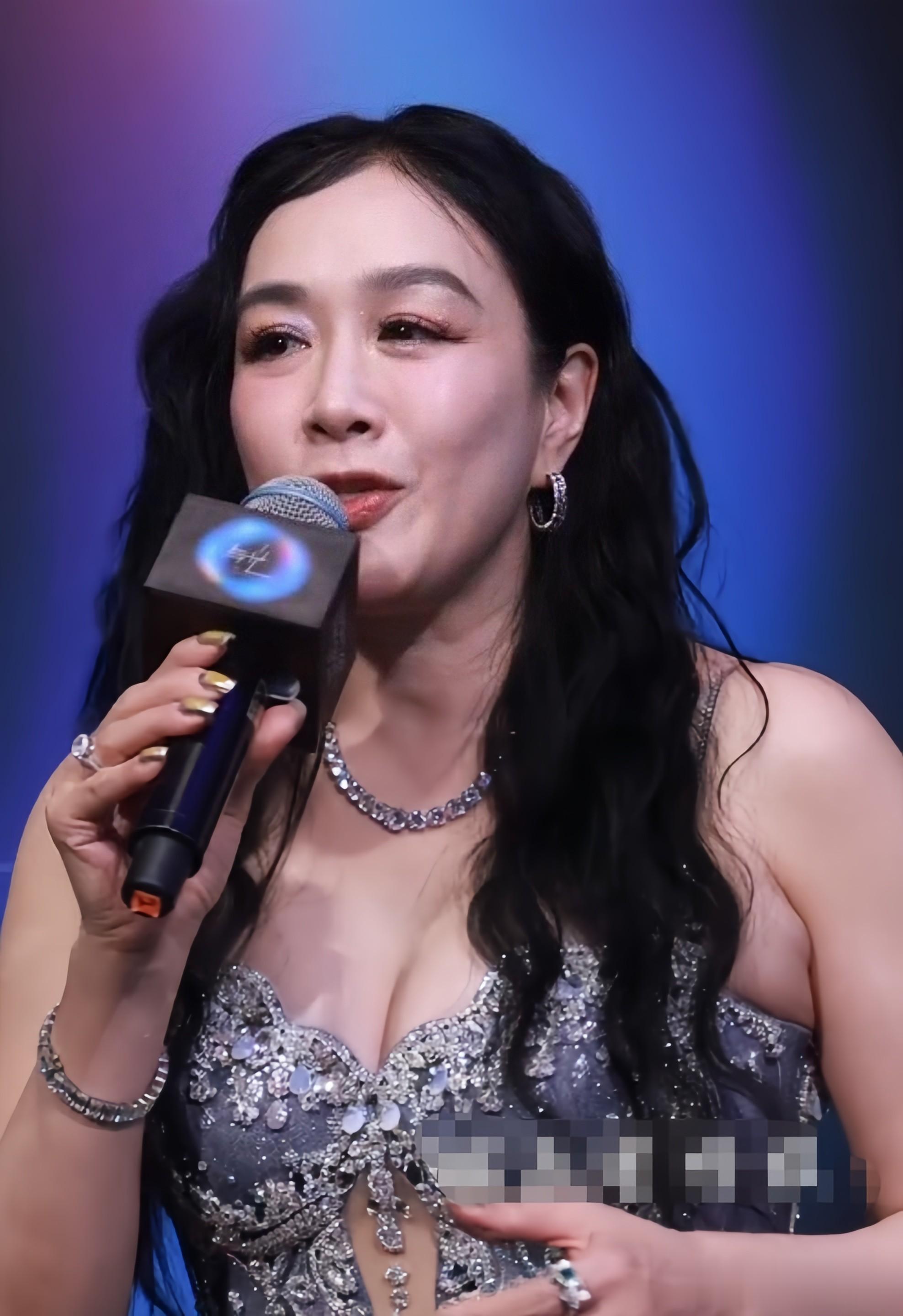 而另一边53岁的钟丽缇,一条深V闪钻裙直接把红毯变成个人秀场。