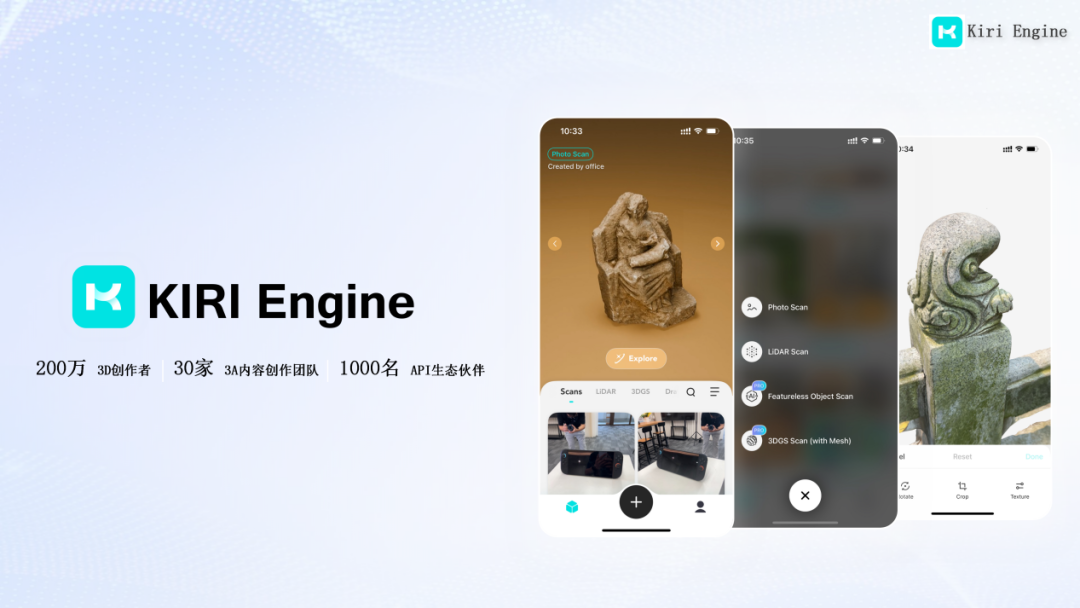 KIRI Engine目前已在海外上线,拥有200万3D创作者,1000名生态合作伙伴。 KIRI Engine的使用方法非常简单,只需要拿手机围绕物品拍照一圈,就能生成高质量的3D模型。这其中使用的是KIRI自研的3D高斯泼溅技术,可以将普通手机照片或者视频在几分钟内转化为高精度、可编辑的PBR 3D模型。