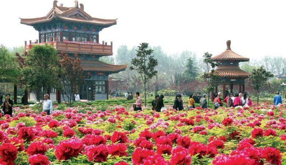 关于赏花秘籍:王城公园,800多个品种的“牡丹宇宙”,(其中)黑海撒金、珊瑚台等珍品云集;中国国花园,在洛河畔的十里花廊里,“二乔”双色牡丹惊艳地亮相;隋唐城遗址植物园,30万株牡丹与古风建筑相互辉映,夜间灯光秀仿若梦幻,骑电瓶车更便捷!