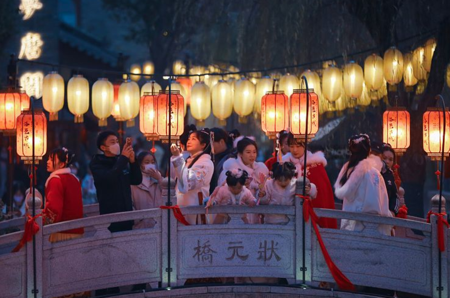 穿越体验:满街的汉服小姐姐已成为洛阳新景。推荐傍晚前往洛邑古城,提一盏鱼灯漫步青石巷,或在应天门遗址披帛起舞,让唐风宋韵在快门声中复活,租汉服+妆造人均不到百元!