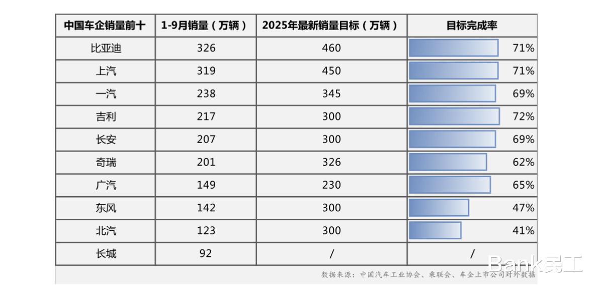 与此同时,多家车企销量目标达成率亮眼,共同推动行业高质量发展。上汽、吉利等企业在燃油与新能源双线并进中稳步前行,一汽、长安、奇瑞、广汽等也凭借多品牌协同与电动化转型,实现了规模增长与目标进度的有效推进。