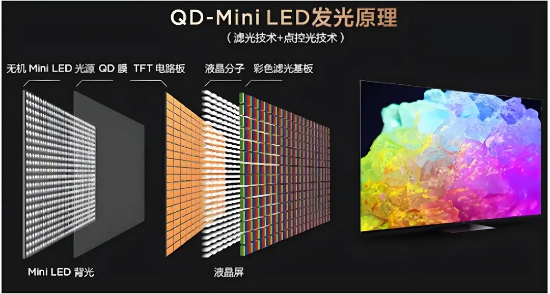 一时间,QD-Mini LED、SQD-Mini LED、RGB-Mini LED等专业术语裹挟着“跨代”、“旗舰”、“终结者”的话术,构成了一幅令人眼花缭乱的技术万花筒。