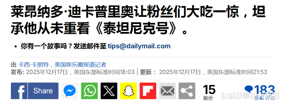 《泰坦尼克号》作为影史经典,全球票房超过22.6亿美元,曾斩获11项奥斯卡奖,也是小李子演艺生涯中最具代表性的作品之一。