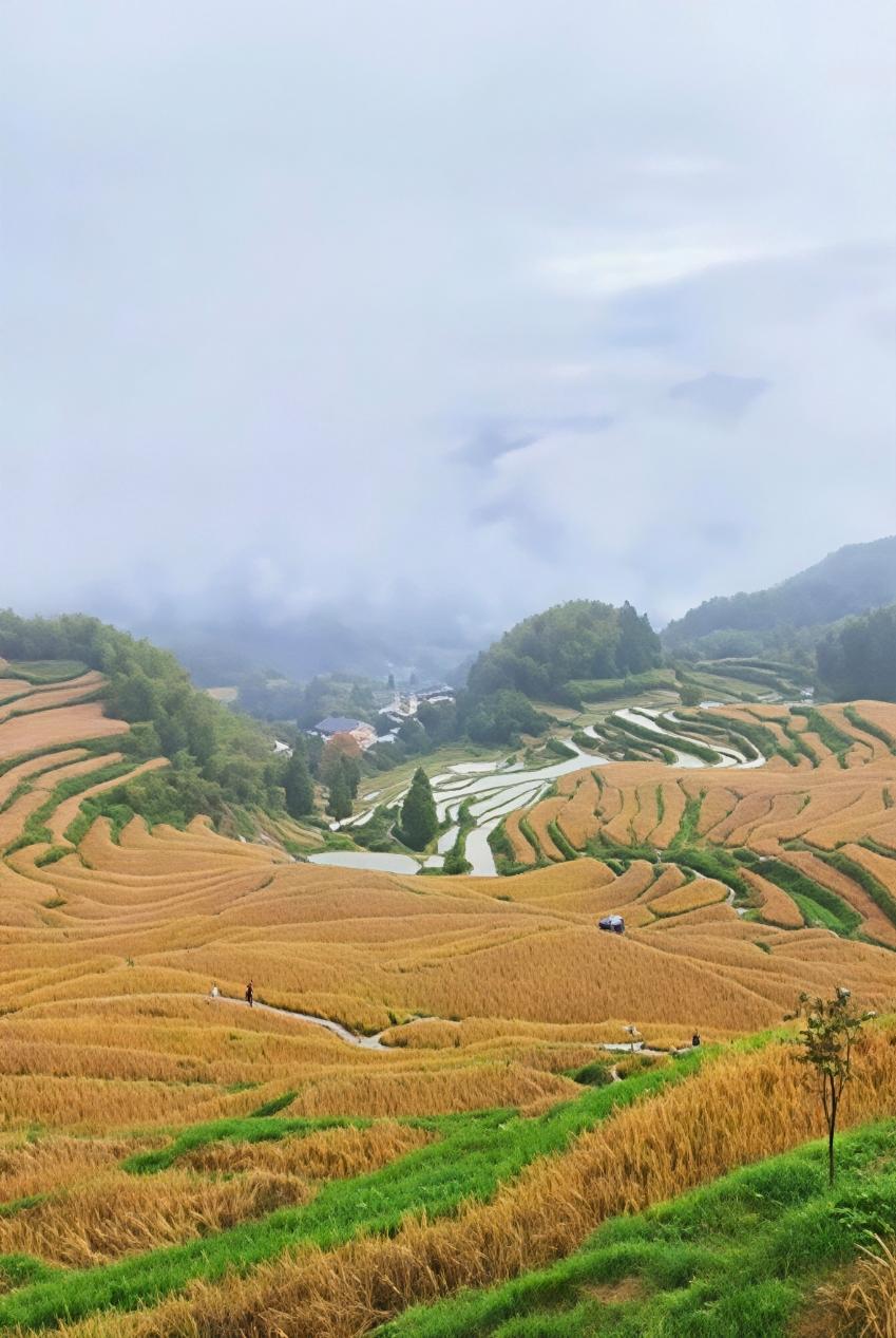一片一片黄黄的稻谷,令人如痴如醉,让人不由自主地沉醉在这份宁静与美好之中,一边尽情享受这里一点一滴的风景魅力,小编一边游玩一边欣赏,不经意路过旁边,忽然听到有本地人在唱小阿兵那首歌,故乡烟雨,我穿一缕青衫漂泊而来,我穿一件寒衣踏遍风霜,句句都提故乡经历,对故乡思念,小编一下子停下脚步,倾听了几句,旋律非常优美,小编也跟着本地人哼一句,一边还不忘记拍照这美丽的梯田。