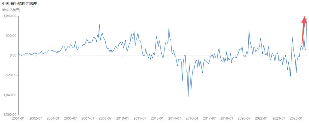 关键1个月就0.7万亿。而中国的贸易顺差非常大,前些年还淤积了大量的外汇没结,所以这么大的结汇量完全能持续下去。