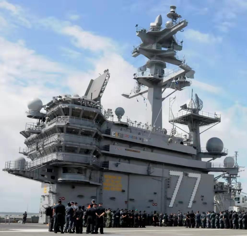 美国“福特”级核动力航母:第一批计划建造3艘,首艘于2017年服役,二号舰“肯尼迪”号建造基本已完工,有望于2021年下水,待服役后可能会取代服役30多年的“尼米兹”号航母。