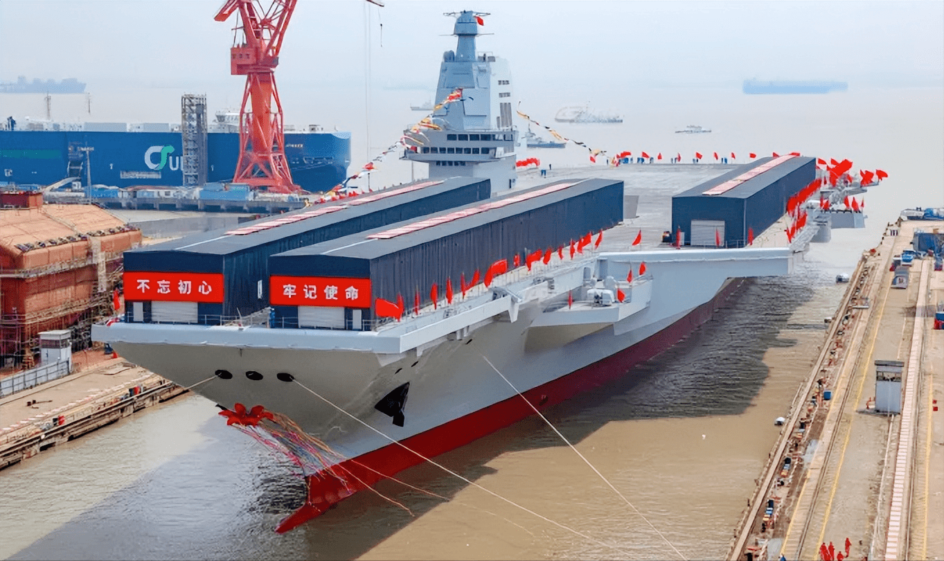 中国目前已下水两艘常规动力航母,第三艘航母已经下水舾装试验,采用电磁弹射系统,未来第四艘大概率将采用核动力。