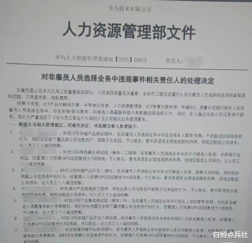 华为成都存储部门100余人中,62人被处理,核心岗位几乎全员涉案,很多部门基本全部开除。