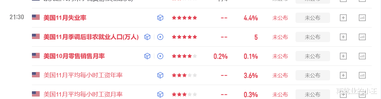 今晚就要看到11月份的非农数据了,根据之前看到的裁员人数、职位空缺和小非农数据来推断,近期美国的就业市场有好转迹象,对应的非农数据情况应该是失业率回落、新增非农就业人数上涨、薪资反弹。