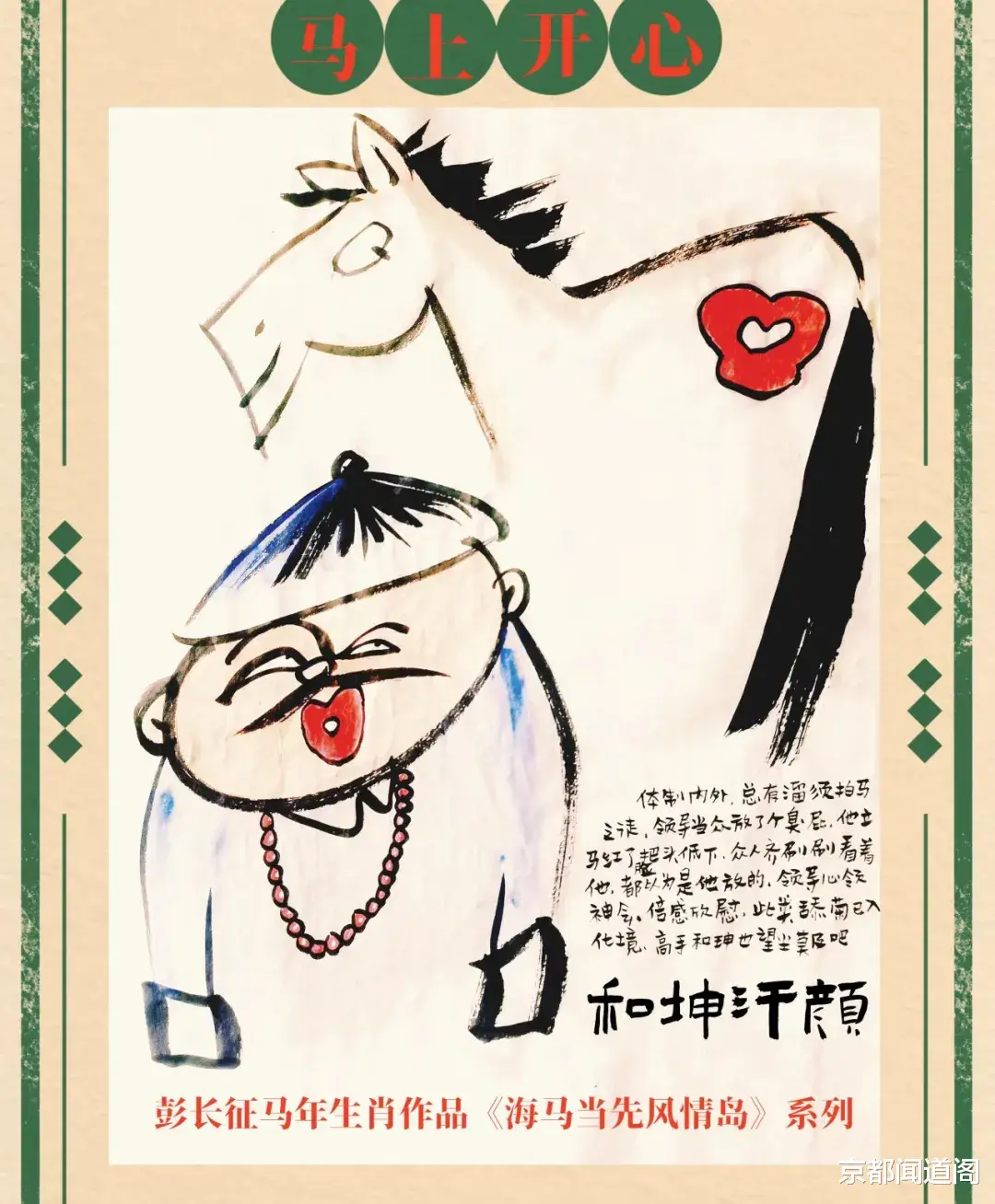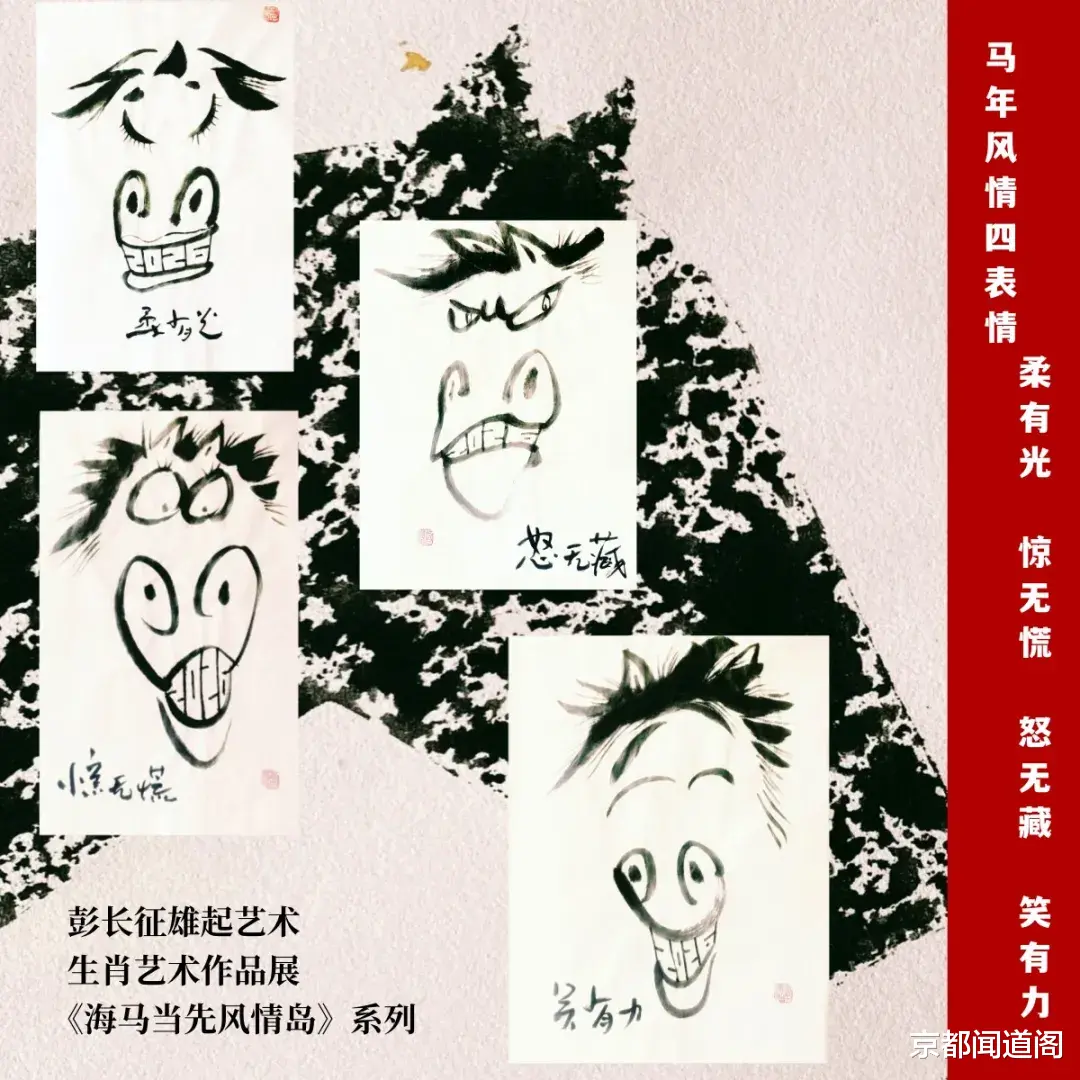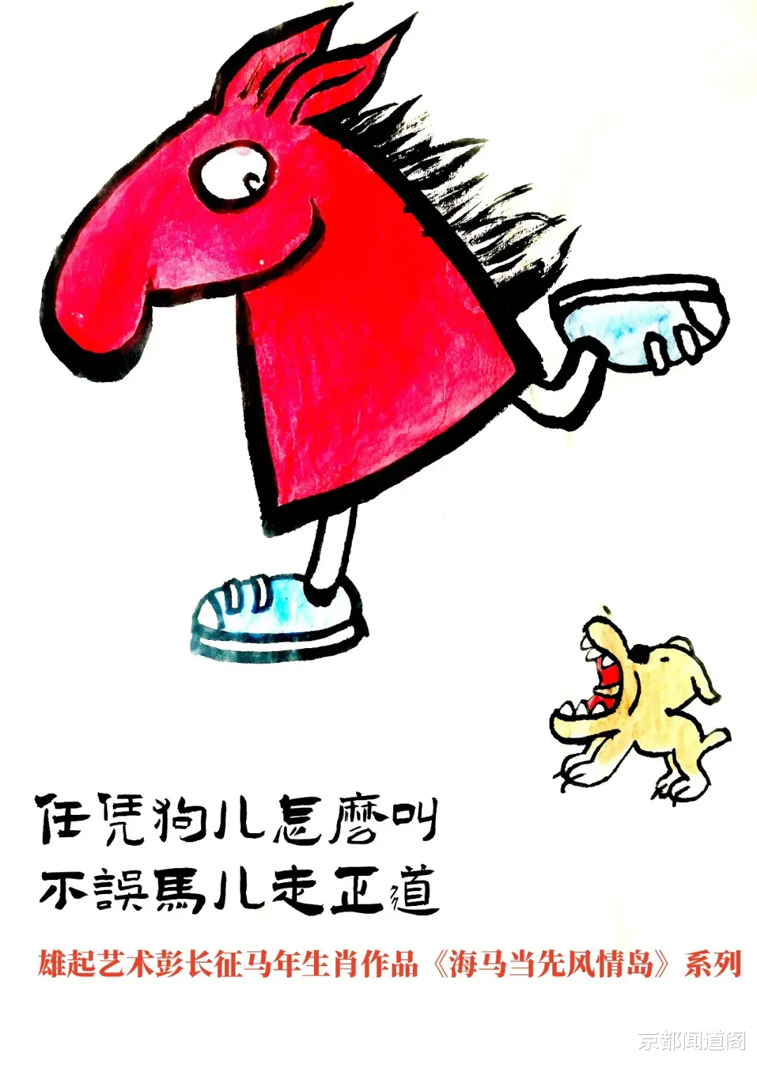 在deepseek的查询中得知,彭长征的生肖水墨漫画创作始于2015年,创作并发布了第一幅生肖作品《雄起·乙未羊》,开启了持续至今的生肖系列创作。这些作品以生肖动物为主题,结合时事、社会现象和人文思考进行创作,形成了独特的“雄起艺术”幽默与讽刺风格,并先后在北京、香港、澳门、广州、宁波、成都、绵阳等地举办个人主题画展和媒体专栏赏析,受到了广泛关注和好评,并成为其代表性的作品系列之一。此次以《海马当先风情岛》和《动物也风情》生肖主题集中在大理展示,旨在传递中国传统文化魅力,让我们在南诏风情岛上体会浓浓年味,传递新春祝福,共享美好时光。