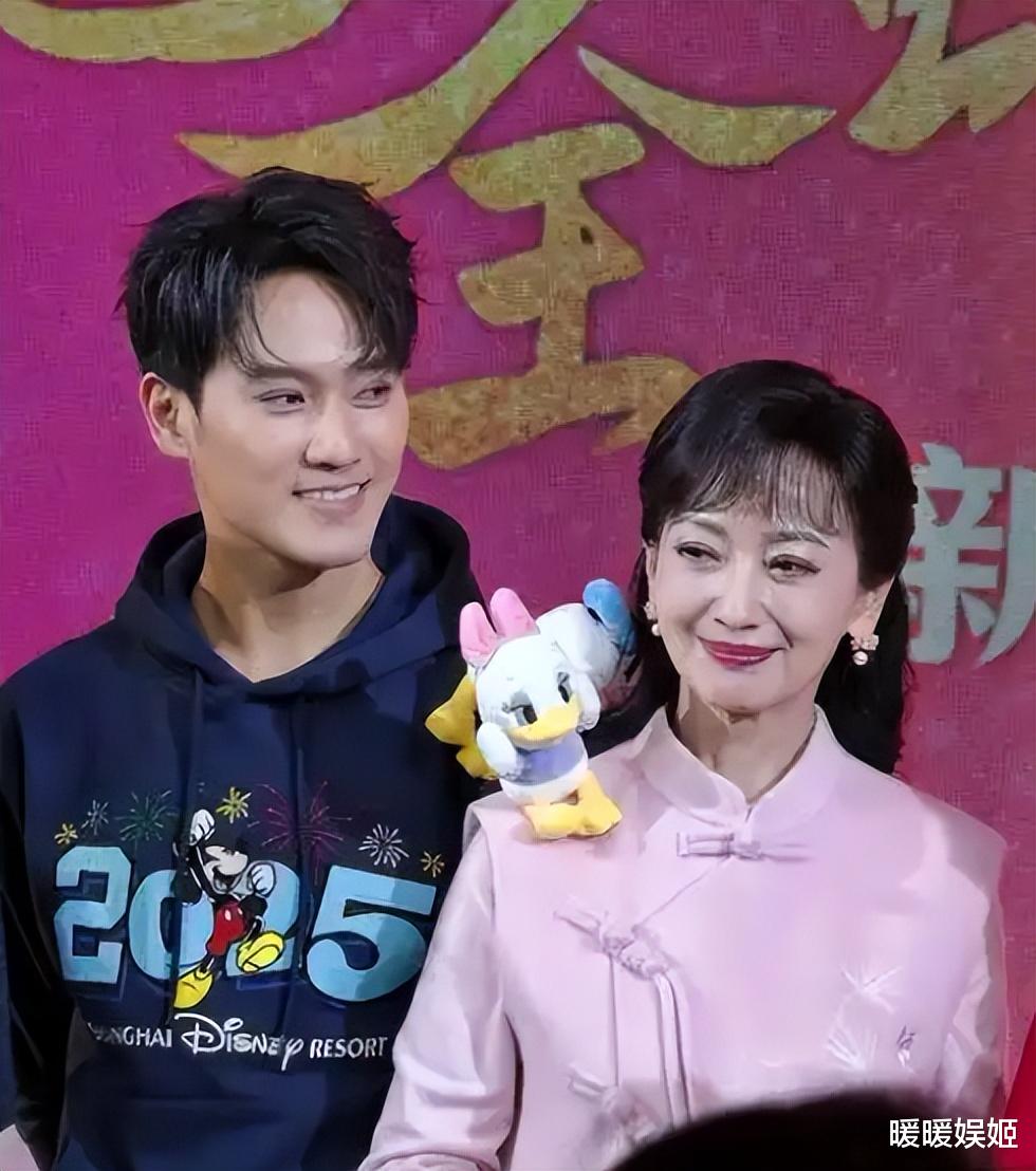 她跟老搭档站在台上,撑把伞,重现当年断桥借伞的画面,勾起多少人当年的回忆。