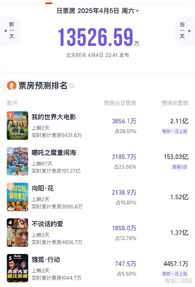 而且,明明4月4日还有新电影《猎狐·行动》上映的梁朝伟,也没有积极工作跑宣发。上映首日票房747万,他本人好像也不着急的样子。梁朝伟没有被孩子所累,工作排片从未间断,但最近这几年影片质量的确是不及格,票房成绩也很一般。