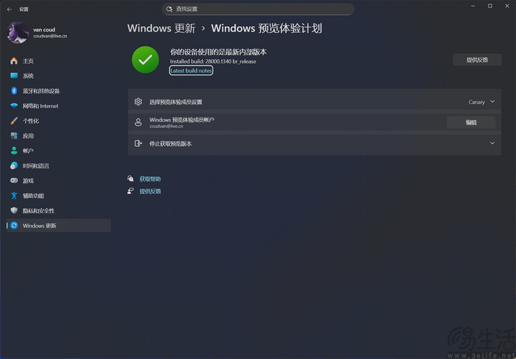 当然,目前26H1版本的Windows 11并未向普通用户推送更新。所以如果大家想要升级,就需要登录微软账号,并在“设置-Windows更新”中申请Windows预览计划的资格。我们在选择了Canary渠道后,就能收到该版本的推送了。