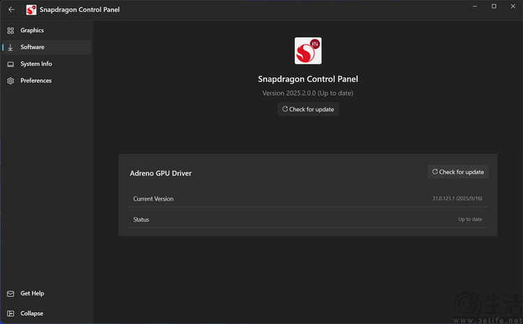 这就要提到骁龙控制面板的另一个功能了,那就是它自带了骁龙本的Adreno GPU驱动更新检测功能。这样一来,用户就无需经常去“刷”高通的官网,能够更简单地下载到最新的GPU驱动。