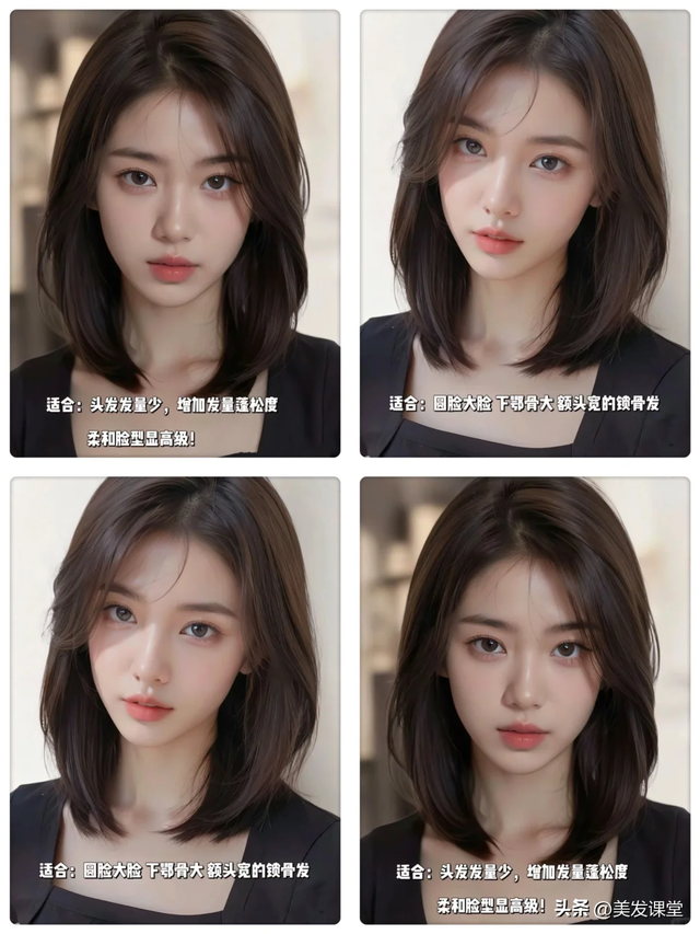 4️⃣百搭造型:锁骨发适合各种风格的妆容和服饰搭配,无论是甜美风、复古风,还是简约风,都能轻松驾驭。
