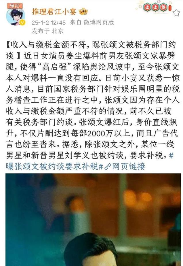 这一次,江小宴爆料张颂文被税务部门约谈。