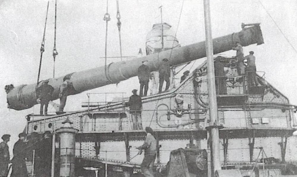 但是改装并非用18英寸炮替换原来的12英寸炮,而是在机舱后方腾出位置增加一座炮塔,炮口朝向右舷,射界只有20°,战斗时炮舰只能用右舷对准目标开火。甲板下新增了一个可容纳60发炮弹的弹药舱,使用时需要先将炮弹起吊到甲板上,通过轨道移动至炮塔,原本18英寸炮设计射速为1发/分钟,在炮舰上实际射速降低至3~4分钟/发。