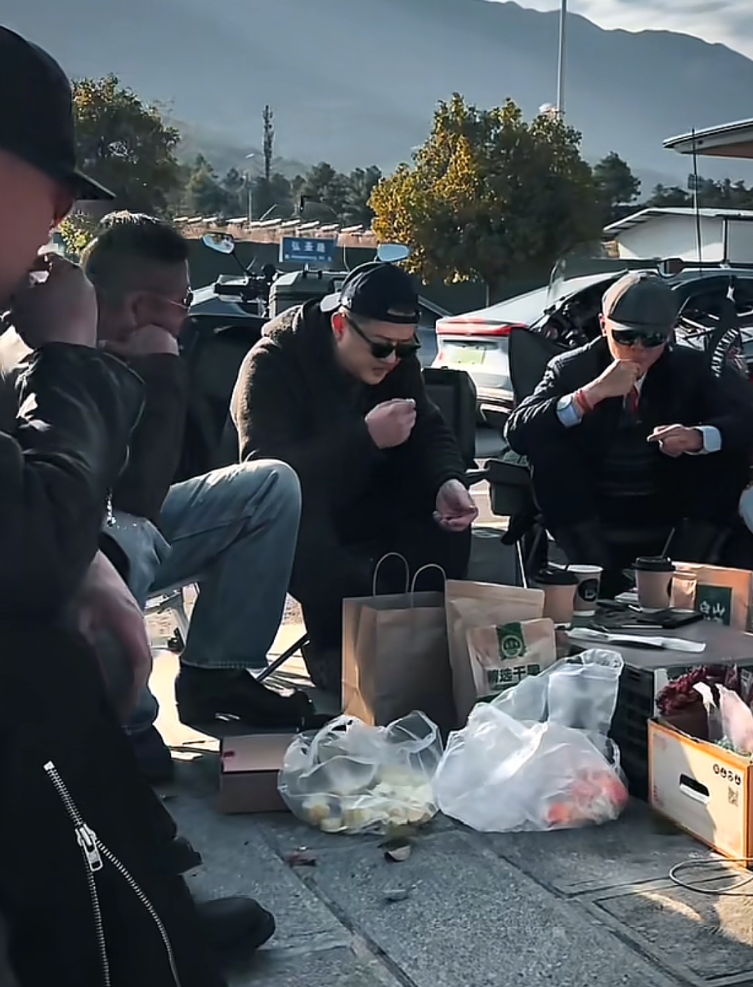 曝出照片中,李亚鹏和大冰一行人直接坐在马路边一边晒太阳一边聊天,地上还摆着点小吃坚果,李亚鹏就这样边嗑松子,边和三五好友闲聊,过年能有这么惬意的时刻也是很舒服了。