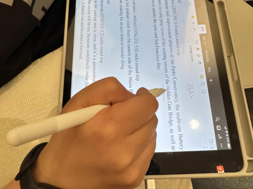在实际书写中,倍思这款电容笔的书写表现较为出色,使用了pom材质的笔尖,整体的书写流畅度尚可,而且它还具有全屏防误触功能,双手搭在屏幕上写画也不影响。虽然在倾斜压感上还有提升空间,但在一般的书写情况下,已经能够满足大多数用户的使用需求。