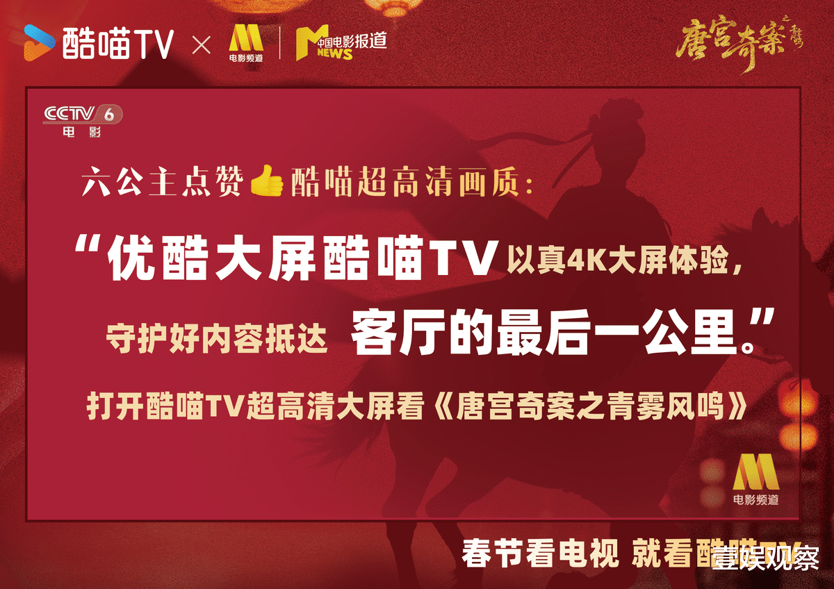 新春佳节,阖家团圆,客厅电视大屏成为家庭情感凝聚与共享体验的核心场域。在这样注重陪伴与共情的节点,一部值得全家人沉浸其中、共同品味的优质剧集,不仅能烘托节日氛围,更能唤起跨越代际的情感连接。近日,古装悬疑探案剧《唐宫奇案之青雾风鸣》(以下简称《唐宫奇案》)正式登陆优酷平台,正是这样一部值得被完整“看见”、深入“感受”的作品。当女性成为叙事的主体,观看本身即是一种态度的选择。酷喵TV大屏以真4K高清质感,守护好内容抵达客厅的“最后一公里”,这一技术对家庭观剧体验的提升,也获得了中国电影报道的认可与点赞。全家可一同沉浸于“她视角”驱动的悬疑世界中,共同感受剧中的情感共振与智性碰撞。让团聚时光因品质而更显珍贵。