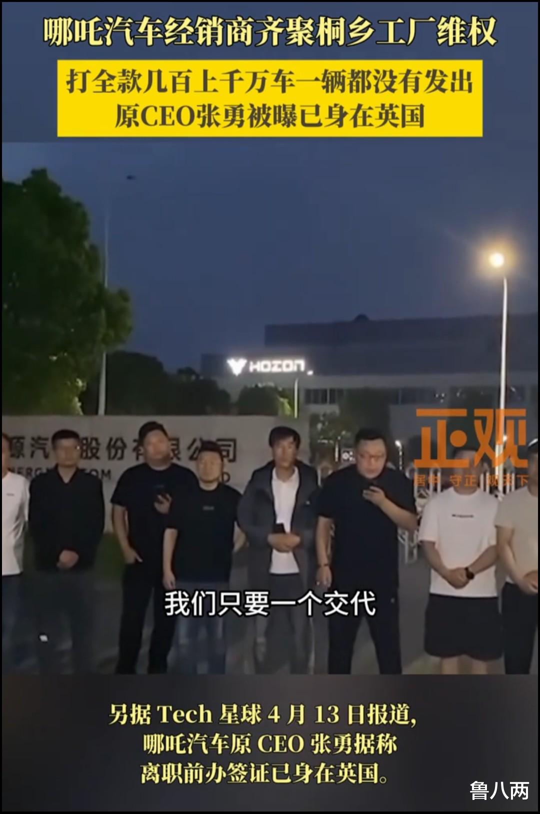 扬言要脚踏风火轮闯荡全球市场的哪吒汽车熄火了,部分经销商们今日跑到桐乡工厂门前讨说法。