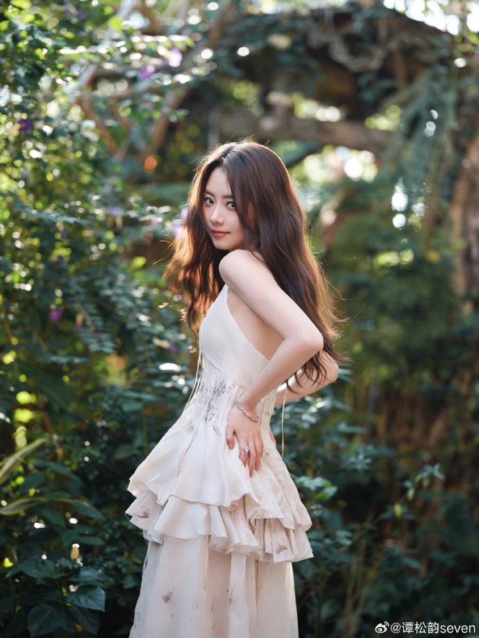 这哪里是简单的跨年打卡?是谭松韵把湖南卫视跨年晚会后的松弛,揉进了海南的枝叶和蛋糕裙的褶皱里。三层蕾丝的软、掌状叶的脉、发梢沾的光,连裙边没拍掉的叶屑,都是岁末没滤过的真切,像把 2025 最后一晚的暖,都藏在了这几帧裹着潮气的绿里。