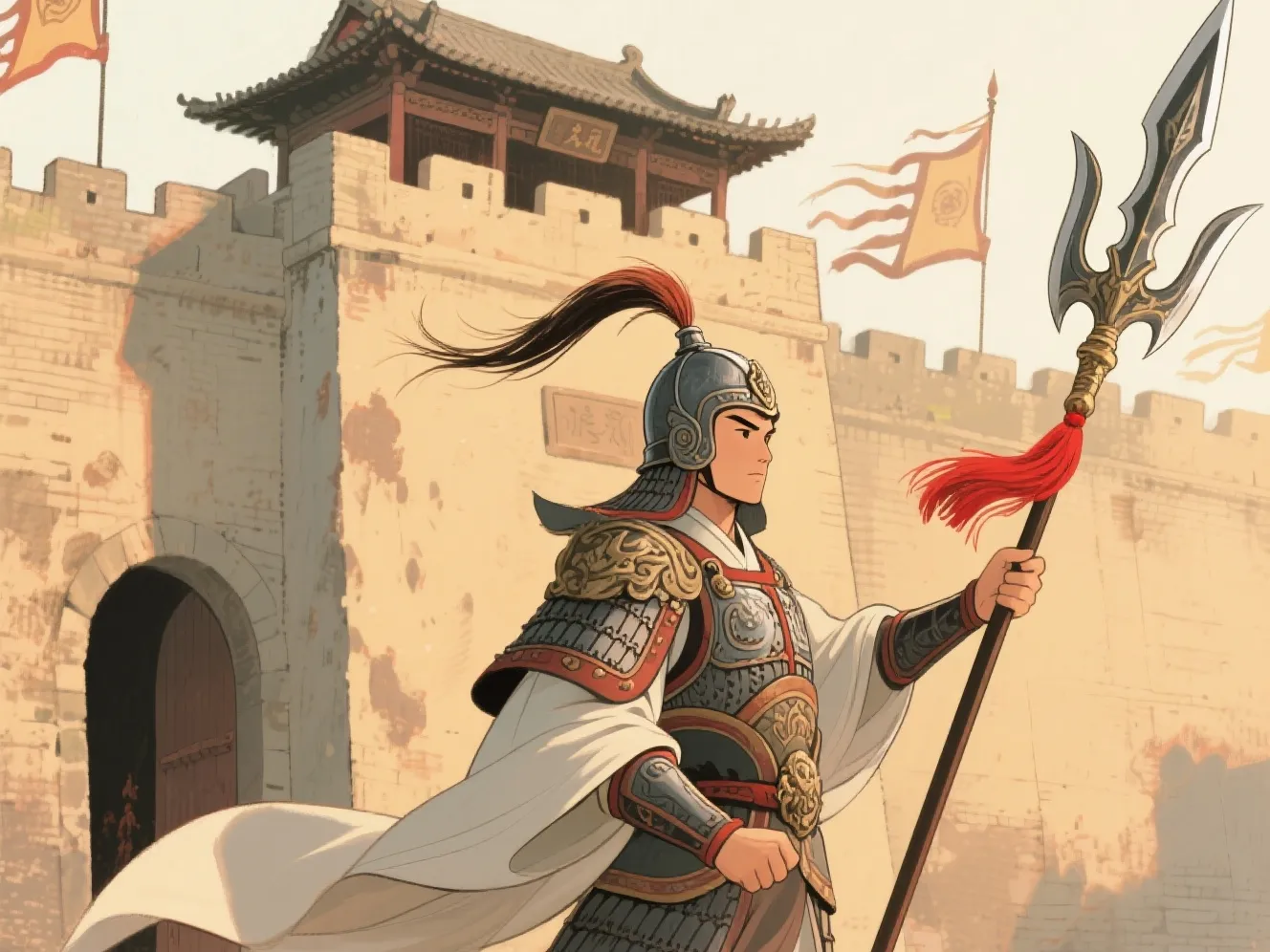 杨延昭是杨家将的第三代家主,坐骑一字板肋玉麒麟,手使一柄素缨虎牙蘸金枪。