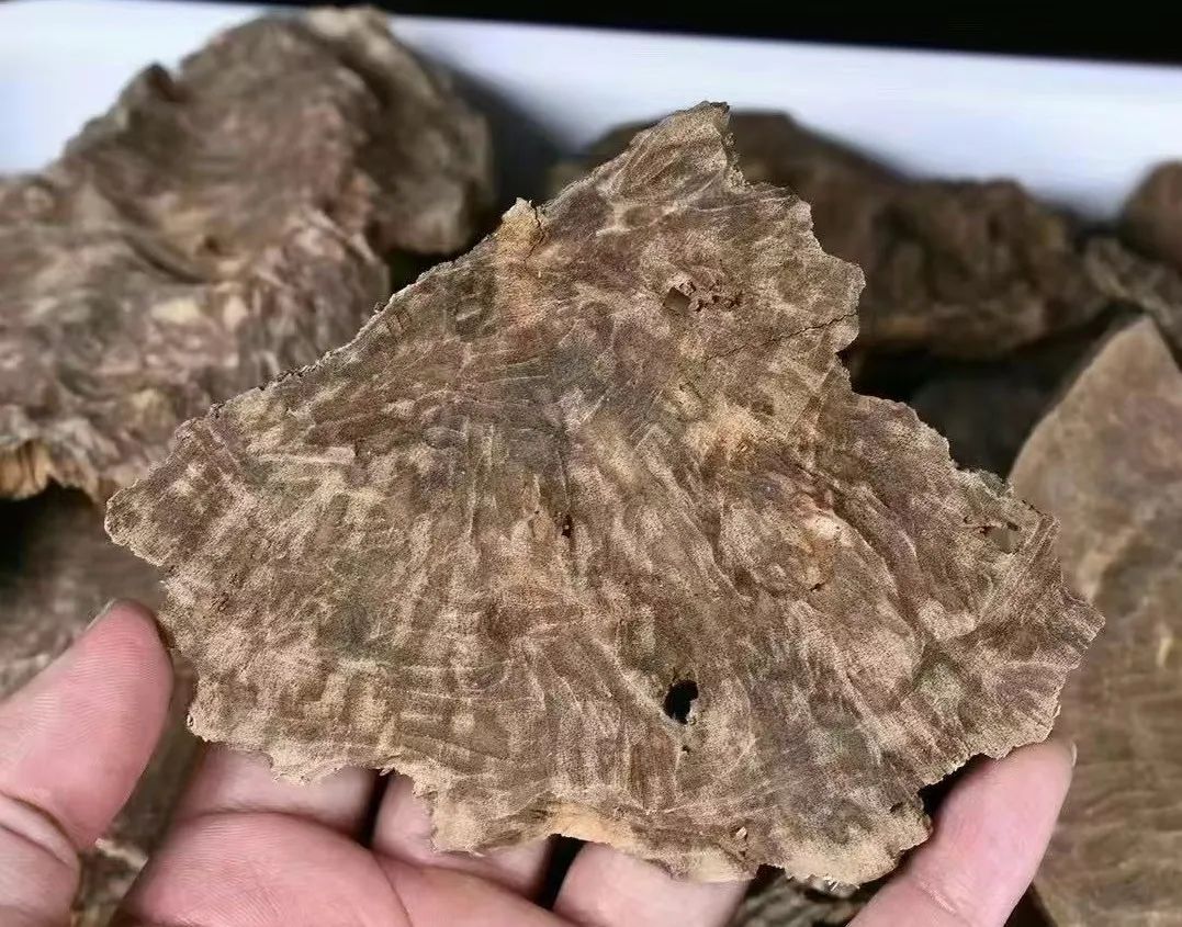 3. 板头树干锯断后平面受伤结香形成的香料。成香时间短、油性偏浅,种植香为主,常用于入门产品。板头也有等级差别,野生老板头可转化为“老头”“铁头”“包头”。