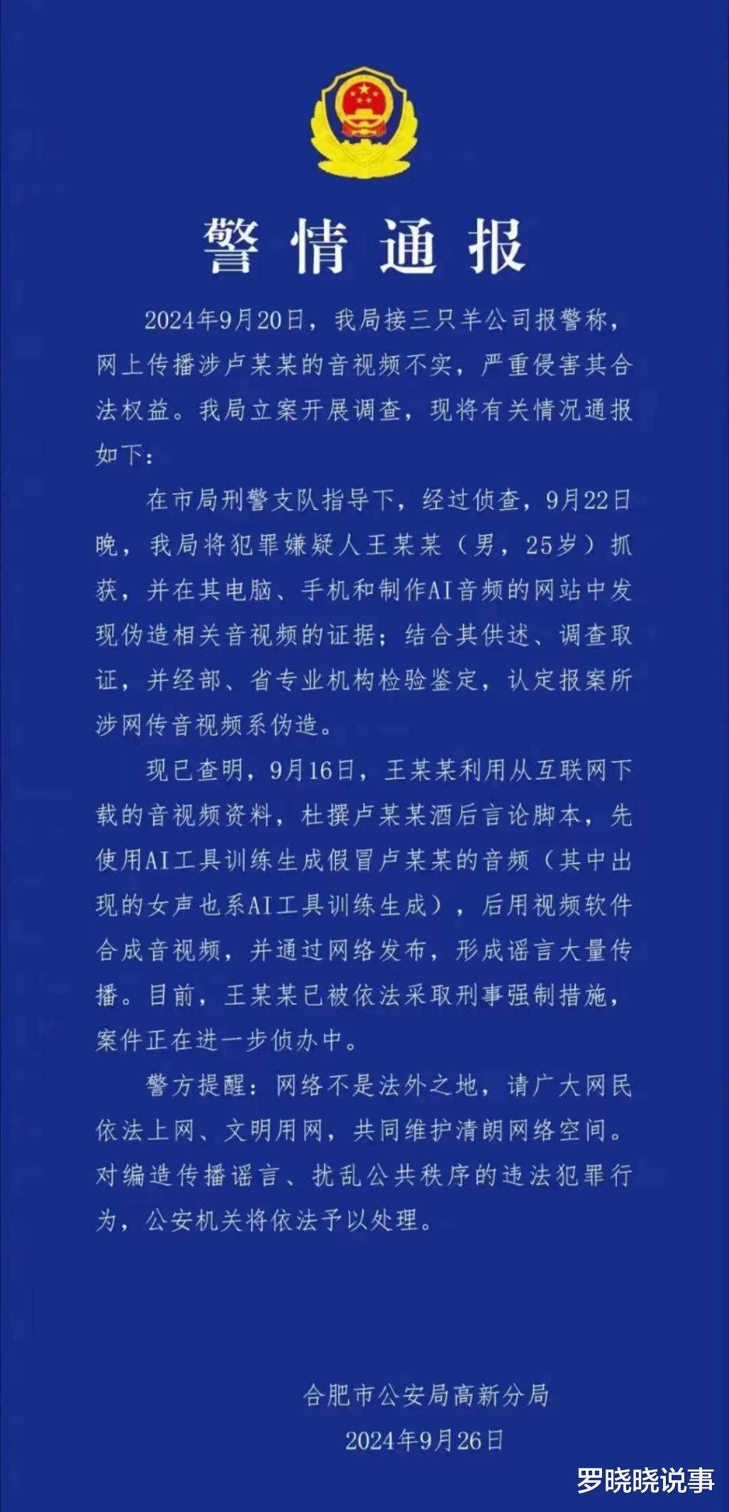 前几日,警方发布通报称,这段录音系利用AI技术伪造。