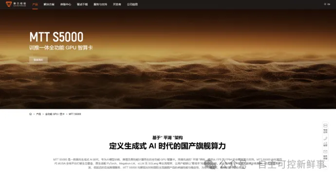MTT S5000官网介绍:https://www.mthreads.com/product/S5000