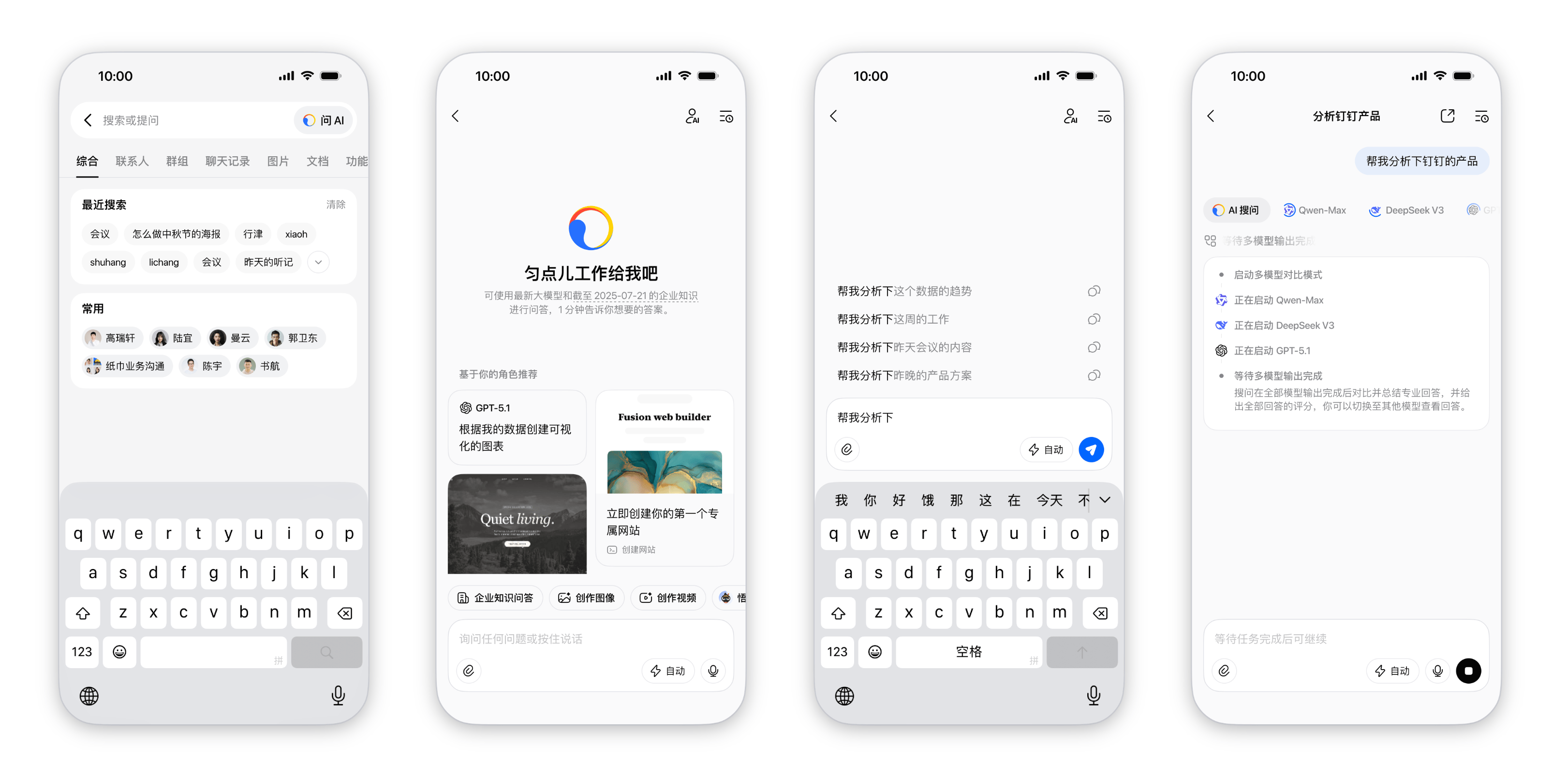 在AI钉钉1.1“木兰”版本中,AI搜问、AI表格、DingTalk A1、AI听记四款核心产品完成重大升级,进一步夯实人机协同落地能力。