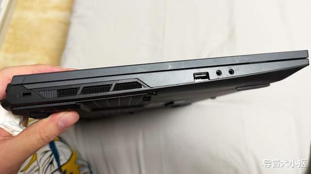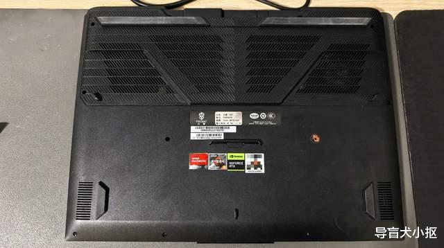灰色版本的电竞属性设计。拆包装取真机,小编这台t6a是二手产品,灰色,九新,几乎没有使用痕迹。机身全局灰色材质,外壳有金属与塑料,拼接组装的痕迹不明显,螺丝固定的位置显著,做工粗犷。机身厚度来到了23mm,重量达到2.1千克,属于超大体积的阵营。日常使用,t6a一定是固定位置,加上散热底座,当作台式机用。机身外壳,中框与底壳上设计了大量进风口、出风口,d壳也是全部“敞开式”设计,最大程度提高散热效能。