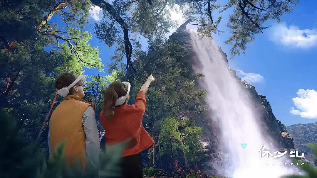 这部XR影片1∶1还原了恐龙时代的实景情境,在元宇宙技术、LBVR(基于在地的虚拟现实体验)技术基础上,叠加全身动捕、实时渲染、高拟真建模、空间重定向等高科技手段,让观众身临其境地感受史前世界的壮美,近距离观察三个纪元不同种类的恐龙。