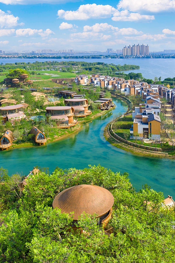 90间特色船屋、树屋临湖而栖:全国第一棵人造榕树树屋在后官湖畔扎根,豆荚树屋错落有致地分布,从远处望去就像一座童话森林里的精灵树屋;华中稀有的特色船屋,包括临水双卧大别墅、星梦复式双卧别墅、奇趣南瓜屋等,游客栖居于此,晨可观日出波光,夜可揽繁星入眠。