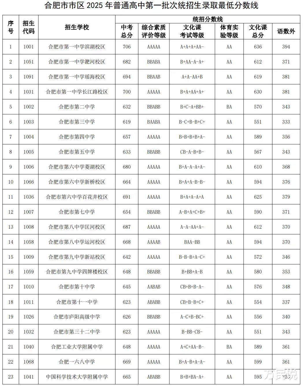 拿别人的“前15%”去比它的“100%”,本身就是一场不公平的对决。2025年,中科大附中最低录取分数线665分。这意味着什么?意味着这210个孩子的平均生源质量,仅次于一中滨湖、一六八中和一中长江路,与一中瑶海不分伯仲 。