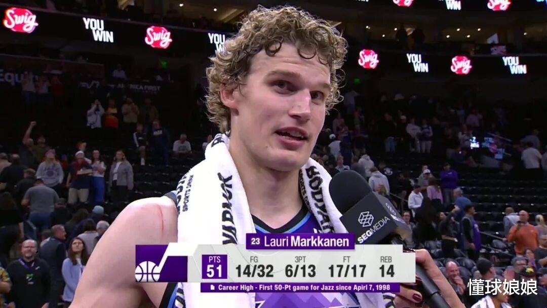 这赛季马尔卡宁试过单场拿到47分7板2助,还试过单场拿到51分14板3助。